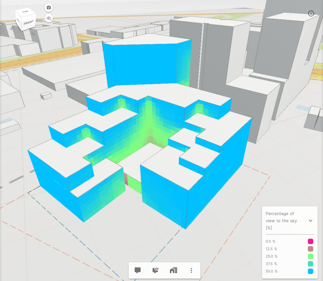 Door het aanschaffen van deze studie krijgt u inzicht in de mate waarin er vrij zicht is op de open lucht/hemel. Hiermee kunt u aan het geveloppervlak goed bepalen waar in het ontwerp, balkons en/of galerijen goed tot hun recht komen.